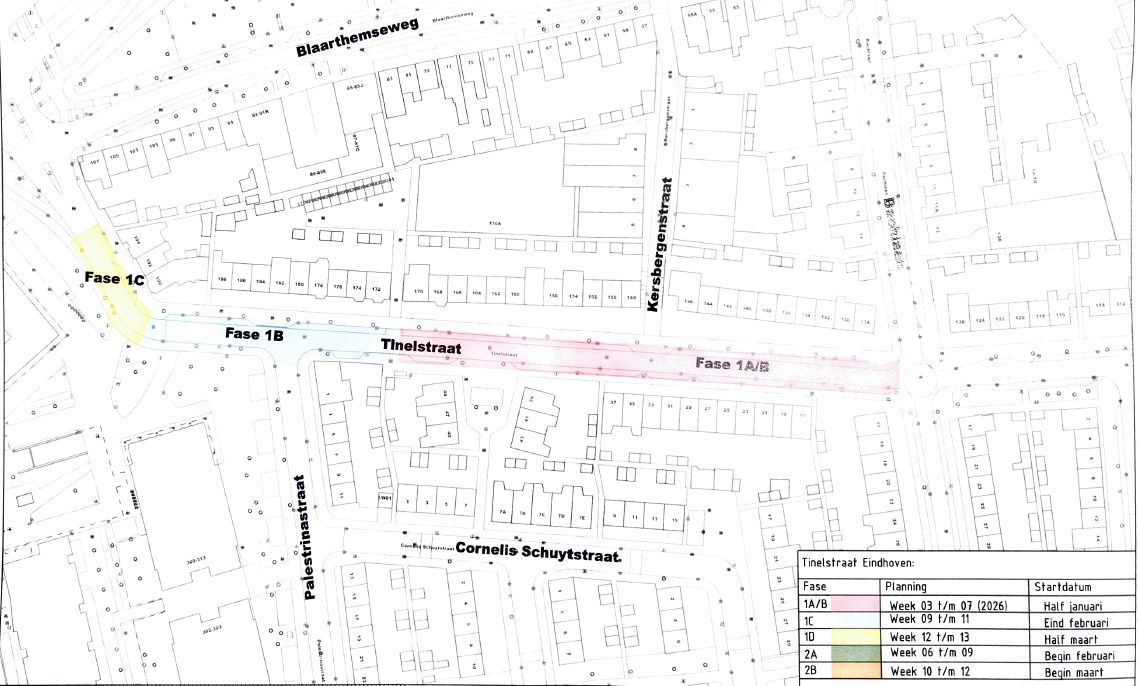 Vanaf 12 januari 2026 start gemeente Eindhoven met het herstraten van de Tinelstraat.