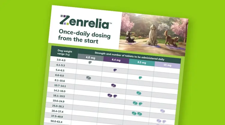 Zenrelia is een voorgeschreven medicijn voor honden dat wordt gebruikt om jeuk en ontsteking te behandelen die veroorzaakt worden door allergieën.